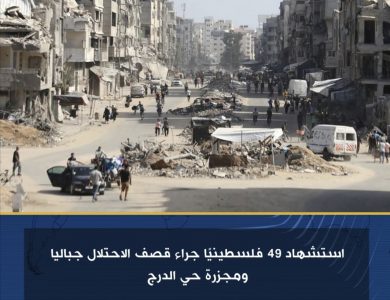 استشهد 49 فلسطينيا وأصيب آخرون، منذ فجر اليوم الإثنين، في قصف الاحتلال على قطاع غزة. وذكرت وكالة الأنباء الفلسطينية “وفا”، أن 19 فلسطينيا استشهدوا؛ بينهم أطفال ونساء، وأصيب آخرون، في قصف الاحتلال منزلا بمنطقة جباليا البلد شمال قطاع غزة. وفي سياق متصل.. استشهد 30 فلسطينيا وأصيب العشرات، فجر اليوم، في قصف الاحتلال مدرسة تؤوي نازحين في حي الدرج من مدينة…