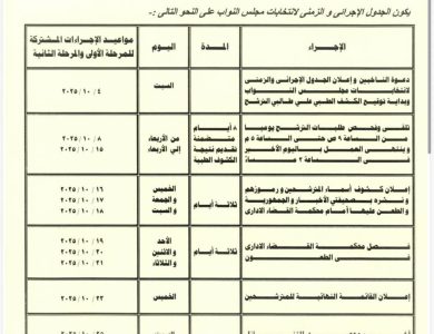 الجدول الزمني لانتخابات مجلس النواب 2025