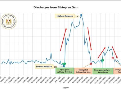 أصدرت وزارة الموارد المائية والري بيانًا رسميًا أوضحت فيه تفاصيل جديدة حول التطورات الأخيرة المرتبطة بإدارة وتشغيل السد الإثيوبي على مجرى النيل الأزرق، مؤكدة استمرار التصرفات الأحادية وغير المنضبطة، وما نتج عنها من تقلبات حادة في كميات المياه الواردة والمنصرفة، بما يخالف القواعد الفنية والقانون الدولي ويحمل مخاطر جسيمة على دولتي المصب والمنشآت المائية الواقعة خلف السد. وقالت الوزارة في…