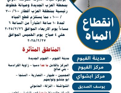 #انقطاع_المياه #الفيوم #صيانة_محطة_العزب #شركة_مياه_الشرب
