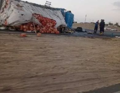 انقلاب شاحنة تحمل 10 أطنان زيت طعام بطريق أسيوط الغربي بالفيوم