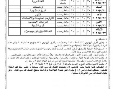 جدول امتحانات الصف السادس الابتدائي 2025 بالفيوم