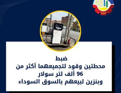ضبط أكثر من 96  ألف لتر سولار وبنزين بكفر الدوار بحيرة