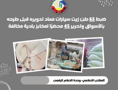 ..وتحرير 45 محضر لمخابز بلدية مخالفة أكدت الدكتورة جاكلين عازر محافظ البحيرة، على إستمرار تنفيذ الحملات الرقابية على مدار الساعة، بالتنسيق مع كافة الأجهزة التنفيذية والرقابية، لضبط الأسواق والمخابز، والتصدي لكافة صور الغش التجاري والتلاعب في السلع المدعمة، بما يضمن وصول الدعم إلى مستحقيه. وفي هذا الإطار، قامت مديرية التموين والتجارة الداخلية، برئاسة محمد هدية، بتنفيذ حملات تموينية مكثفة على…