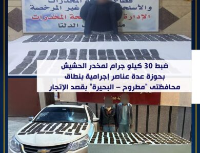 تابعت الإدارة العامة لمكافحة المخدرات بقطاع مكافحة المخدرات والأسلحة والذخائر غير المرخصة بالتنسيق مع الأجهزة الأمنية المعنية نشاط عدة عناصر إجرامية تخصصوا فى الإتجار بالمواد المخدرة وترويجها على عملائهم بنطاق مديريتى أمن “مطروح – البحيرة”. عقب تقنين الإجراءات تم ضبط عاطلَين “لهما معلومات جنائية”بدائرة قسم شرطة مطروح.. وبحوزتهما 150 طربة لمخدر الحشيش وزنت 15 كيلو جرام – سيارة. كما تم…