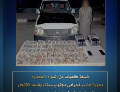 أكدت معلومات وتحريات قطاع الأمن العام بمشاركة مديرية أمن جنوب سيناء قيام عنصر إجرامى بالإتجار فى المواد المخدرة متخذاً من دائرة قسم شرطة رأس سدر مسرحاً لمزاولة نشاطه الإجرامى. عقب تقنين الإجراءات تم ضبطه حال إستقلاله سيارة بدائرة القسم وبحوزته 20 كيلو جرام لمخدر الحشيش ومبلغ مالى و2 ماكينة عد نقود.. وبمواجهته إعترف بحيازته للمادة المخدرة بقصد الإتجار، والمبلغ المالى…