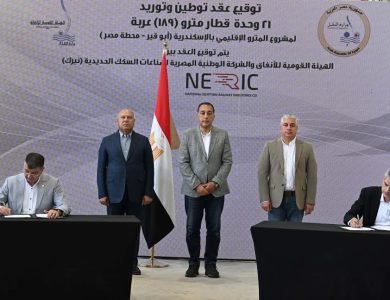 اتفاقية لتوطين وتوريد 21 وحدة قطار مترو بواقع 189 عربة شهد الدكتور مصطفى مدبولي، رئيس مجلس الوزراء، خلال زيارته مصنع نيرك لصناعات السكك الحديدية (نيرك) بشرق بورسعيد اليوم، مراسم توقيع اتفاقية عقد توطين وتوريد عدد 21 وحدة قطار مترو بواقع 189 عربة لصالح مشروع مترو الإسكندرية (أبو قير – محطة مصر) وذلك بحضور الفريق مهندس/ كامل الوزير، نائب رئيس مجلس…