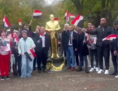 مجسم ذهبى للرئيس السيسى من الجالية المصرية في بروكسل