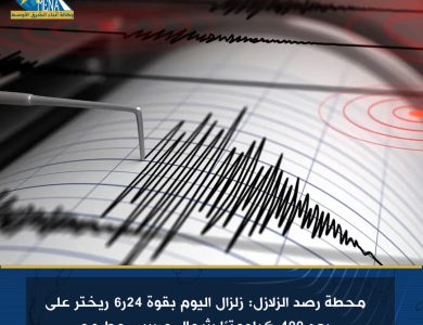 محطة رصد الزلازل: زلزال اليوم بقوة 24ر6 ريختر على بعد 499 كيلومترا شمال مطروح