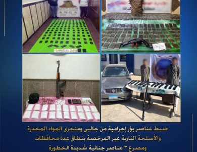 أكدت معلومات وتحريات قطاعى (مكافحة المخدرات والأسلحة والذخائر غير المرخصة – الأمن العام) بالتنسيق مع أجهزة الوزارة المعنية قيام بؤر إجرامية بنطاق عدة محافظات تضم (عناصر جنائية شديدة الخطورة سبق إتهامهم والحكم عليهم فى قضايا ” إتجار بالمخدرات – سلاح – قتل عمد – شروع فى قتل – ضرب وإحداث عاهة – سرقة بالإكراه”) بمحاولة جلب كميات من المواد المخدرة…