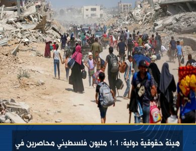 هيئة حقوقية دولية: 1.1 مليون فلسطيني محاصرين في بقعة لا تتجاوز مساحتها 25 كم