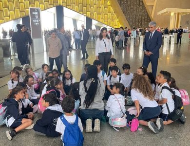 وزير الآثار يلتقى الزائرين والسائحين المصريين والأجانب بالمتحف المصرى الكبير