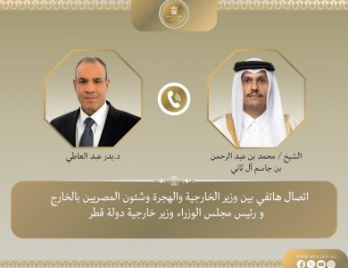 أجرى وزير الخارجية الدكتور بدر عبد العاطي اتصالا هاتفيا مع رئيس الوزراء القطري محمد بن عبد الرحمن آل ثاني بحث فيه الجانبان سبل تعزيز العلاقات الثنائية، والقضايا الإقليمية. وتناول الإتصال تطورات الأوضاع في قطاع غزة، حيث شدد وزير الخارجية المصري على أهمية تثبيت وقف إطلاق النار ومنع أي خروقات قد تقوض الجهود الجارية، مؤكدا على استمرار التنسيق الوثيق بين مصر…