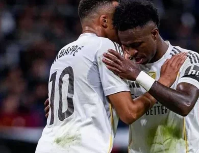 وجه النجم البرازيلي فينيسيوس جونيور رسالة طريفة إلى زميله الفرنسي كيليان مبابي بعد فوز فريقهما ريال مدريد على فالنسيا برباعية نظيفة، ضمن منافسات الجولة الحادية عشرة من الدوري الإسباني. وأقيمت المباراة على ملعب سانتياغو برنابيو، حيث تمكن الفريق الملكي من تحقيق فوز كبير، رغم إهدار فينيسيوس ركلة جزاء بعدما طلب من مبابي تنفيذها بدلًا منه باعتباره المنفذ الأول، لكنه سدد…