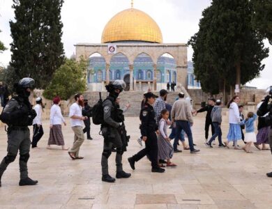 اقتحم مستعمرون، اليوم، باحات المسجد الأقصى المبارك، بحماية شرطة الاحتلال الإسرائيلي. وذكرت وكالة الأنباء الفلسطينية “وفا”، عن شهود عيان، أن هؤلاء المستعمرين اقتحموا الأقصى عبر مجموعات، من جهة باب المغاربة، ونفذوا جولات استفزازية، وأدوا طقوسا تلمودية في باحاته. كما شددت شرطة الاحتلال إجراءاتها العسكرية على أبواب البلدة القديمة والمسجد الأقصى.