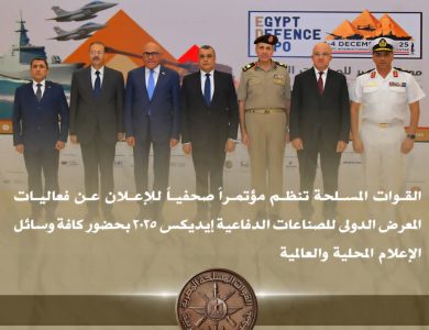 نظمت القوات المسلحة مؤتمراً صحفياً عالمياً بحضور مختلف وسائل الإعلام المحلية والدولية للإعلان عن فعاليات المعرض الدولى للصناعات الدفاعية ” إيديكس 2025 ” فى دورته الرابعة والذى سيتم تنظيمه على أرض مصر بمركز مصر للمعارض والمؤتمرات الدولية خلال الفترة من 1 – 4 / 12 / 2025 تحت رعاية السيد الرئيس عبد الفتاح السيسى رئيس جمهورية مصر العربية القائد الأعلى…