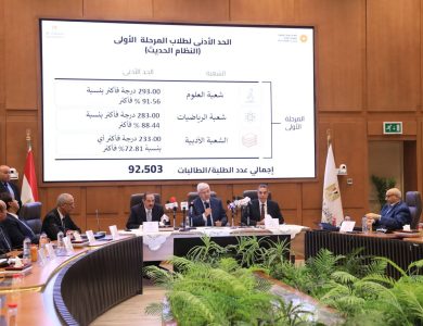 وزير التعليم العالي والبحث العلمي الدكتور أيمن عاشور، نتيجة تنسيق المرحلة الأولى للطلاب الناجحين في الثانوية العامة، حيث تقرر أن يكون الحد الأدنى للقبول بكلية الطب 93.12 % وسجل الحد الأدنى للقبول بكلية طب الأسنان 92.65% والعلاج الطبيعي 92.03% والصيدلة سجل الحد الأدنى 91.87%، وأن الحد الأدنى للقبول بكلية الهندسة 89.84% وسجل الحد الأدنى لكلية التخطيط العمراني 88.75%، فيما تقرر…