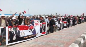 آلاف المصريين يحتشدون بالعريش لاستقبال الرئيس وماكرون