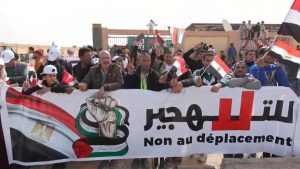 وامتلأت شوارع وميادين العريش بآلاف المصريين، ورفعوا أعلام مصر وفلسطين، وصور الرئيس السيسي، ولافتات كُتب عليها: “غزة ليست للبيع”، “لا للتهجير”، و”100 مليون وراك يا ريس”، وردد المشاركون هتافات داعمة للشعب الفلسطيني ومنددة بالعدوان الإسرائيلي، مؤكدين رفضهم القاطع لأية محاولات لتهجير الفلسطينيين إلى الأراضي المصرية، كما رفع المشاركون لافتات تؤكد دعمهم للقضية الفلسطينية ورفضهم لتهجير الفلسطينيين، مرددين هتافات مثل: “لا للتهجير.. غزة ليست للبيع”.