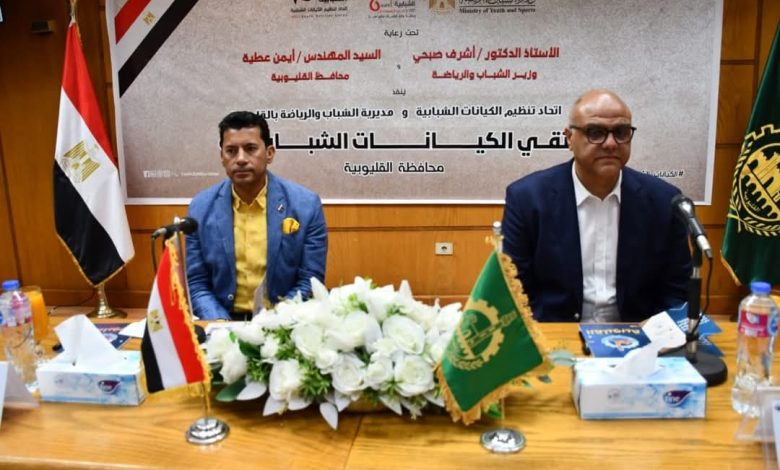 التقى الدكتور أشرف صبحي وزير الشباب والرياضة، والمهندس ايمن عطية محافظ القليوبية، بمجموعة من شباب الكيانات الشبابية بالمحافظة، في لقاء حواري موسّع أقيم على مسرح المحافظة، بحضور عدد من قيادات الوزارة والمحافظة، وعدد من ممثلي الكيانات الشبابية المختلفة.