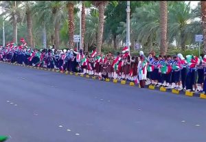 اصطف أطفال وطلبة مدارس الكويت حاملين أعلام مصر والكويت ترحيبًا بالسيد الرئيس عبد الفتاح السيسي بمناسبة زيارة الدولة التي يقوم بها حاليًا للكويت، على طول الطريق من المطار الأميري إلى مقر إقامة الرئيس السيسي في قصر بيان.