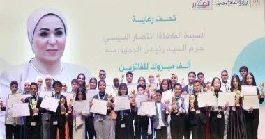هنأت السيدة انتصار السيسى، قرينة رئيس الجمهورية، الفائزين فى مسابقة الدولة للمبدع الصغير.