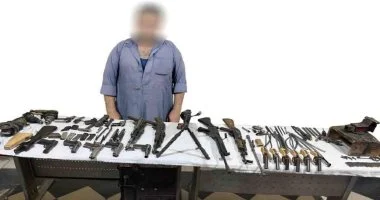 وبعد استصدار إذن النيابة العامة، تمت مداهمة الموقع، حيث أسفرت الحملة عن ضبط 16 قطعة سلاح ناري متنوعة، بينها رشاش، 4 بنادق آلية، 5 طبنجات، بالإضافة إلى 6 فرد محلي الصنع، فضلًا عن أدوات وقطع غيار تستخدم في التصنيع والتجميع.