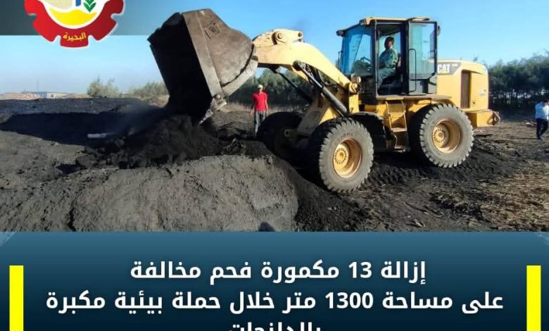 إزالة ١٣ مكمورة فحم على مساحة ١٣٠٠ متر بقرية البستان البحيرة