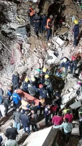وأسفرت جهود الحماية المدنية عن إنقاذ ثلاثة أطفال من أسرة واحدة، حيث جرى نقلهم إلى مستشفى رأس التين العام لتلقي الرعاية الطبية اللازمة، فيما جرى انتشال جثمان سيدة متوفاة من تحت الأنقاض.