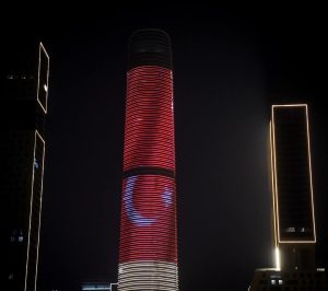 إضاءة البرج الأيقوني بالعاصمة الإدارية احتفالًا بالذكرى المئوية للعلاقات الدبلوماسية المصرية التركية