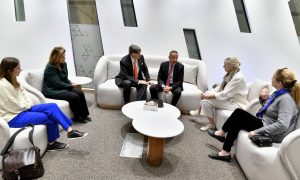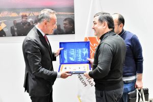 وقد كان في استقبالهم الدكتور أحمد غنيم الرئيس التنفيذي لهيئة المتحف المصري الكبير الذي رحب بهم وتحدث نعم عن رؤية المتحف ورسالته وأهم كنوزه، كما قدم لهم الهدايا التذكارية من المتحف.