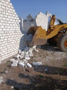 ففي قرية النجمة والحمران، تم تنفيذ إزالة فورية لسور مقام بالطوب الأبيض والأسمنت على مساحة 2 قيراط.