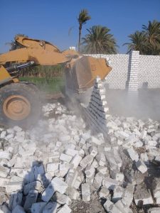 كما شهدت قرية الحسينات، برئاسة محمد ضمراني، تنفيذ إزالة تعدٍ على أراضٍ زراعية على مساحة قيراط و9 أسهم، عبارة عن سور بالطوب الأبيض والأسمنت.