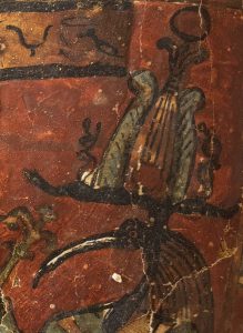 وفي داخل المقبرة، عُثر على تابوت من الحجر الجيري يبلغ ارتفاعه نحو مترين، موضوع فوق منصة صخرية نُحتت مباشرة في الجبل، ويتميز بغطاء على هيئة آدمية يحمل ملامح واضحة لوجه إنسان مزين بباروكة وزخارف مذهلة، بالإضافة إلى عمودين من النصوص الهيروغليفية التي تسجل أدعية للآلهة المحلية بمنطقة أسوان، واسم صاحب المقبرة “كا-مِسيو”، وهو أحد كبار المسؤولين في عصره، إلى جانب أسماء أفراد من أسرته.