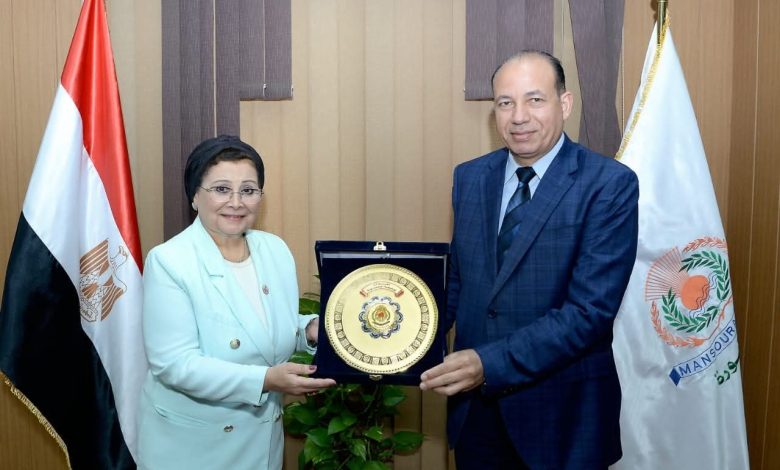 الألفى تبحث تعزيز الشراكة مع جامعة المنصورة لتنفيذ الخطة العاجلة للسكان والتنمية