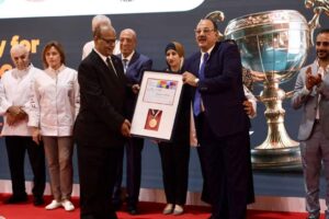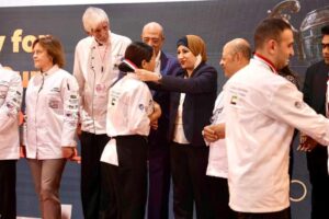 .. وتقوم بتسليم الجوائز للفائزين فى مسابقتى الطهى وكأس أفريقيا لفنون الطهى للشيفات الشباب