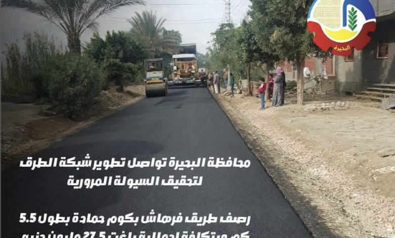 البحيرة تواصل تطوير شبكة الطرق..رصف طريق فرهاش بكوم حمادة