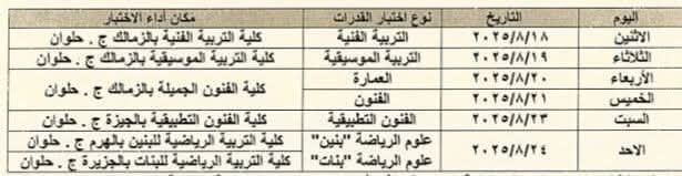 وأضافت أنه لا يتم الحصول على موعد الامتحان من الموقع إلا بعد إتمام عملية السداد بالوسائل المحددة علي صفحة اختبارات القدرات التابعة لموقع التنسيق الإلكتروني، على أن يتم إجراء هذه الاختبارات في الأماكن والمواعيد المحددة كما هو موضح بالجدول.