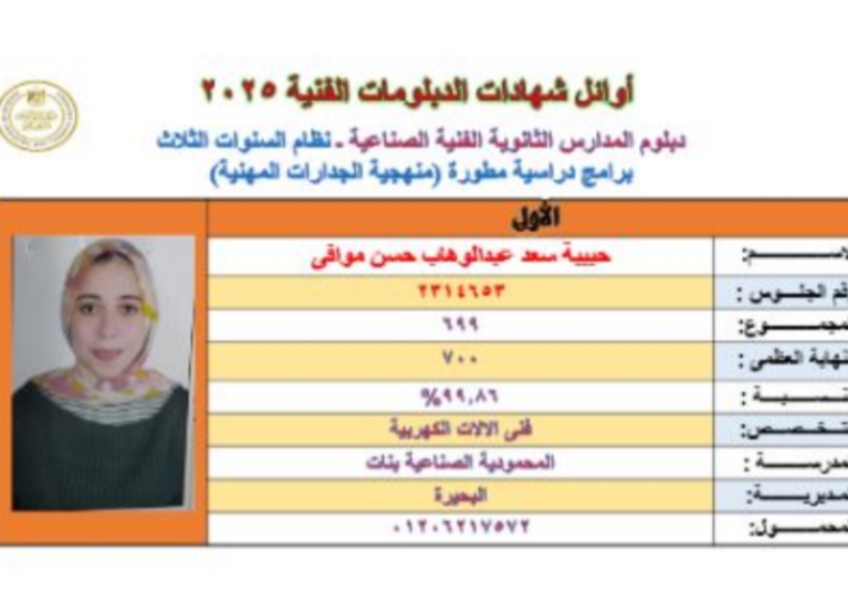 أوائل الشهادة الفنية 2025