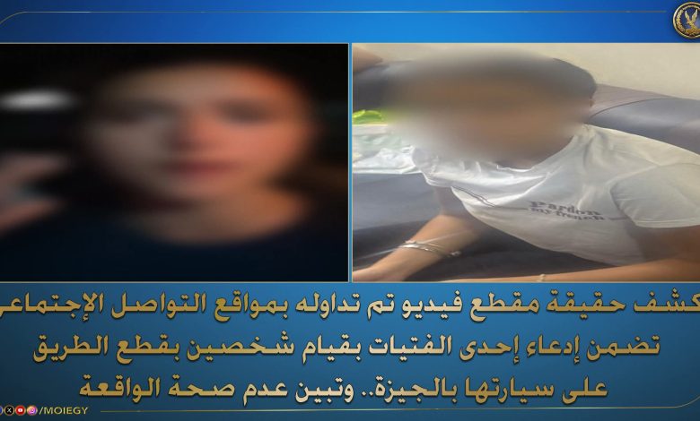 كشف حقيقة مقطع فيديو تم تداوله بمواقع التواصل الإجتماعى تضمن إدعاء إحدى الفتيات بقيام شخصين بقطع الطريق حال سيرها بسيارتها بأحد الشوارع بدائرة قسم شرطة العمرانية بالجيزة من خلال وضع أحجار وجذوع أشجار وتمكنها من الهرب.