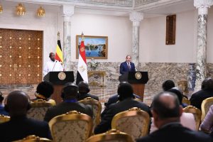 وقال الرئيس السيسي “تبادلت وأخي الرئيس موسيفيني الرؤى حول نهر النيل، شريان الحياة لبلدينا، وتوافقنا على أن التعامل الأمثل بين دول حوض النيل يتعين أن يتأسس على ضرورة تعزيز العمل لتحقيق المنفعة المشتركة، والعمل المشترك للحفاظ على هذا المورد الحيوي وتنميته، والتعاون بصيغة مراعاة مصالح الجميع، وعدم إيقاع الضرر وفقاً لقواعد القانون الدولي، وكما ذكر الرئيس موسيفيني بحكمته البالغة “بدون الحفاظ على بيئة حوض النيل، لن نجد شيئاً نتقاسمه”.