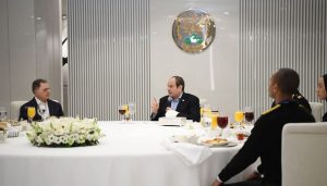 واستعرض الرئيس المصري تطورات الموقف المصري بشأن عدد من الموضوعات والقضايا على الصعيدين الإقليمي والدولي، وتأثيراتها على الأمن القومي المصري، مؤكدا حرص مصر على تعزيز الأمن والاستقرار والسلام في المنطقة والتي تتسم بالاضطراب وعدم الاستقرار.