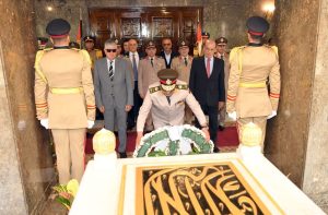 وخلال الزيارة، وضع الفريق أول عبد المجيد صقر إكليلًا من الزهور على ضريح الرئيس الراحل، وقرأ الفاتحة ترحماً على روحه الطاهرة.