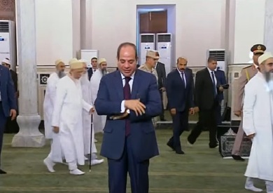 أدى الرئيس عبد الفتاح السيسى، ركعتى تحية المسجد، فور وصوله مسجد السيدة نفيسة رضى الله عنها، لتفقد أعمال تطوير المقصورة بالمسجد.
