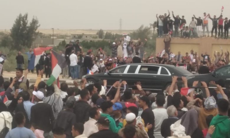 الرئيس يقوم بتحية الحشود الجماهيرية أمام مطار العريش