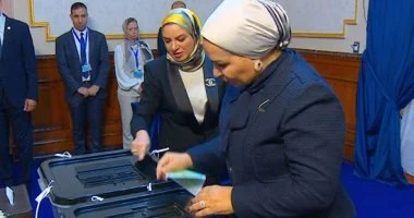 السيدة انتصار السيسى تدلي بصوتها في انتخابات مجلس النواب