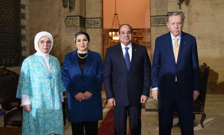 السيسى وأردوغان فى مسجد الإمام الشافعى