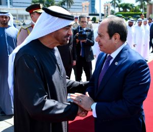 وصرّح السفير محمد الشناوي، المتحدث الرسمي باسم رئاسة الجمهورية، أن زيارة سمو رئيس دولة الإمارات إلى مصر تأتي في إطار العلاقات الأخوية التاريخية والراسخة التي تجمع البلدين الشقيقين، والتي يحرص الرئيس السيسي وسمو الشيخ محمد بن زايد على تعزيزها وترسيخها، والبناء على ما تحقق من إنجازات في إطارها على مدى عقود، منذ تأسيس دولة الإمارات العربية المتحدة على يد المغفور له، بإذن الله، الشيخ زايد بن سلطان آل نهيان.