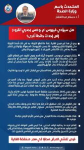 وقال إن هذا ليس نفس الموقف الذي واجهناه أثناء كوفيد عندما لم يكن هناك لقاح ولا مضادات للفيروسات ولكننا نحتاج إلى مزيد من التنسيق والتكامل على المستوى الصحي العالمي لتحقيق ذلك، وأن فرص تفشي المرض محليا في مصر منخفضة للغاية.