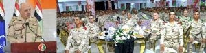 كما أشاد بالأداء المتميز لرجال قوات حرس الحدود في حماية الأمن القومي المصري؛ باعتبارهم “عيون مصر الساهرة”؛ التي تحمي حدود الوطن وتصون مقدساته على جميع الاتجاهات الاستراتيجية للدولة.